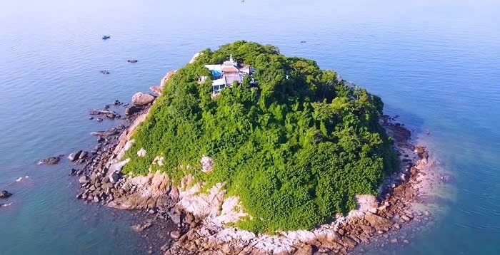 Trên đỉnh đảo hiện còn đền thờ Thiên Y Ana - nữ thần của người Chăm Pa cổ. Ngôi đền được xây dựng vào cuối thế kỷ XVII, nhỏ nhắn nhưng linh thiêng với tượng Po Inu Nagar bằng đá đặt bên trong. Để lên đền, du khách phải đi qua hơn 100 bậc tam cấp phủ rêu xanh, men theo sườn núi quanh co. Từ đây, có thể nhìn bao quát toàn cảnh biển xanh và những con thuyền đánh cá thấp thoáng xa xa.