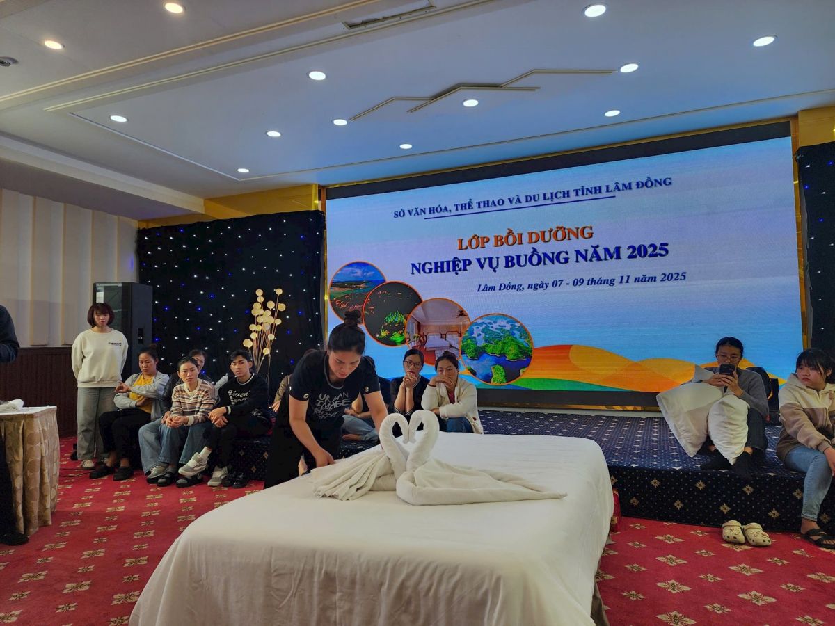 Việc tổ chức các khóa tập huấn, bồi dưỡng kiến thức là cần thiết và quan trọng, giúp kịp thời trang bị quy định mới về hoạt động du lịch sau sáp nhập tỉnh. Chương trình tập trung vào các nội dung cơ bản, bao gồm: quy định kinh doanh lưu trú, kỹ năng nghiệp vụ, nâng cao tính chuyên nghiệp, văn minh trong hướng dẫn du lịch, lễ tân, buồng và kỹ năng ứng xử cho đội ngũ lao động tại cơ sở lưu trú và khu, điểm du lịch. Qua đó, góp phần chuẩn hóa chất lượng dịch vụ, xây dựng hình ảnh điểm đến chuyên nghiệp, thân thiện, đáp ứng yêu cầu phát triển du lịch chất lượng cao tại Lâm Đồng.
