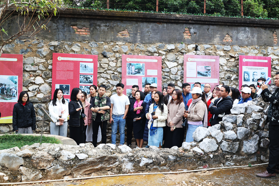 Du khách nghe giới thiệu về di tích nhà tù Sơn La. Ảnh: TITC