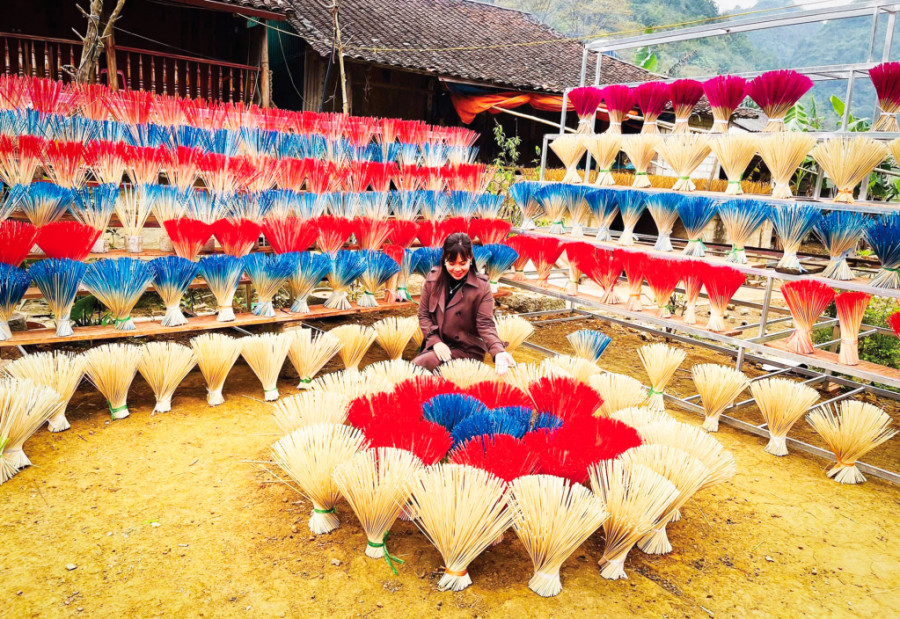 Những bó hương nhiều màu sắc thu hút du khách và người dân địa phương, trở thành điểm check-in sinh động tại làng hương Phja Thắp, xã Quảng Uyên